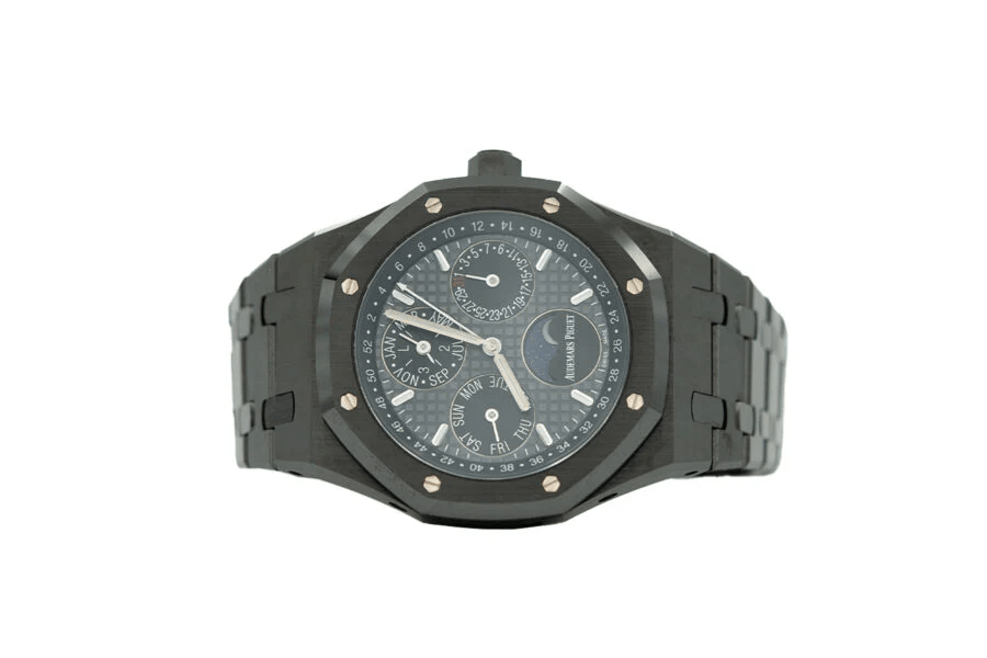 Indulge in horological perfection with the Audemars Piguet Perpetual Calendar Black Ceramic (ref 26579CE.OO.1225CE.01), in preowned condition. Year 2018