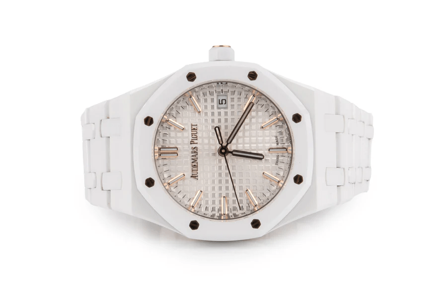 Audemars Piguet Royal Oak Self Winding White Ceramic Ref – 77350CBOO1266CB01 34mm 2025 Pre-loved In Excellent Condition Comes Full Set With Receipt