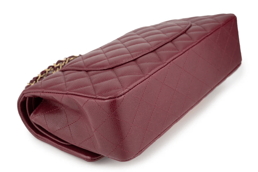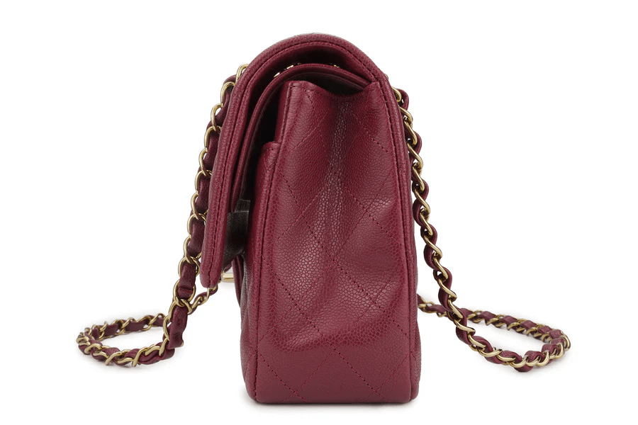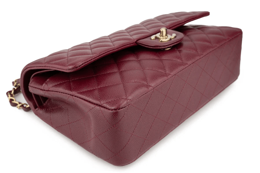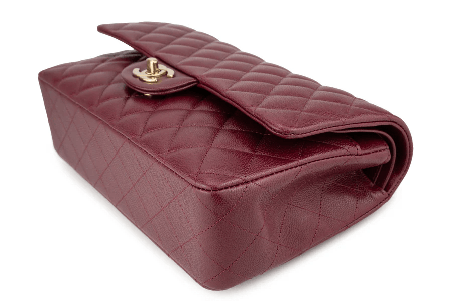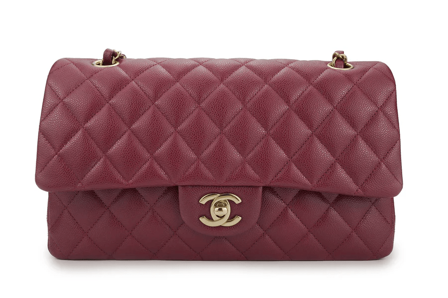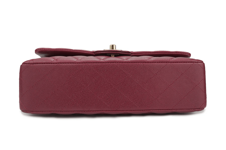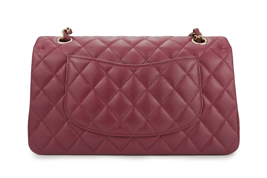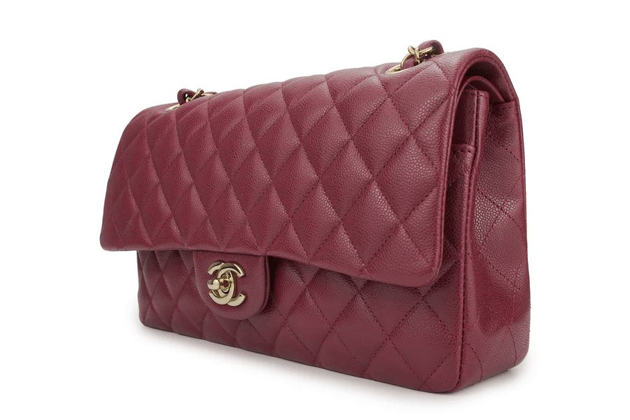 Chanel Medium Classic Flap Caviar Burgundy Champagne GHW 2023 Pre-loved Full Set Microchipped