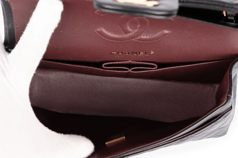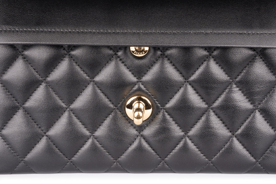 The Chanel Mini Flap bag is made of lambskin leather, which is known for its smooth and shiny surface. The black colour can be paired with almost every outfit. The gold hardware is durable and resists tarnishing; it contrasts nicely with the black leather. This is a 2020 edition pre-loved bag in excellent condition. It comes with a dust bag and an authenticity card.