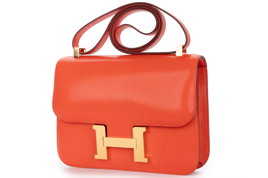 This Hermès Constance 24 comes in a capucine colour, a choice of pop culture enthusiasts. The 24cm size of this bag is considered the best because of its practicality, which makes it a daily wear. This bag was manufactured in 2022 and is available at Love-luxury in box fresh condition. This bag comes with a complete set, including all accessories. The gold hardware and iconic clasp add luxury to this bag and create secure access for its compartments.