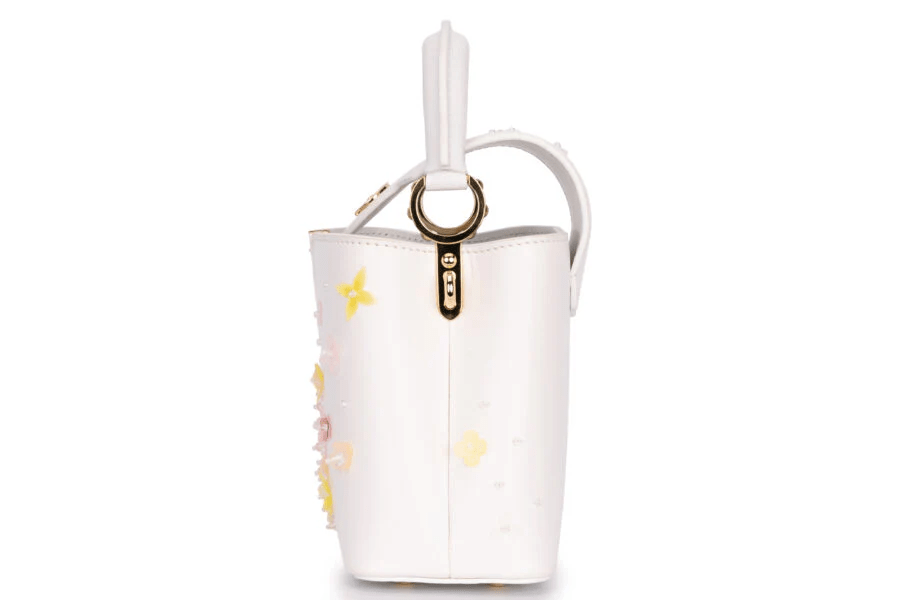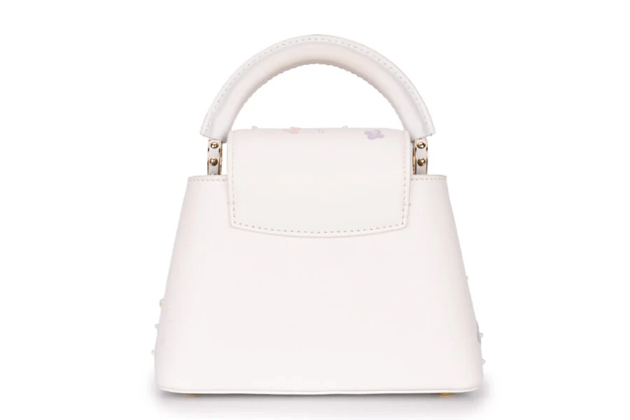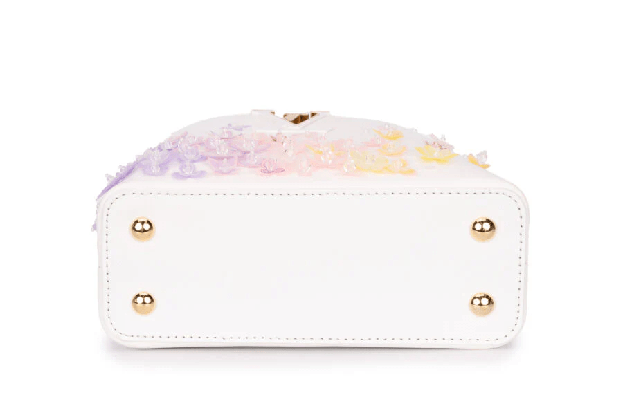 Louis Vuitton Capucines Mini Limited Edition With Flowers Calf Leather Optic White GHW Pre-loved bag As New Condition With Small Mark On The Corner Bottom . It Comes As Full Set